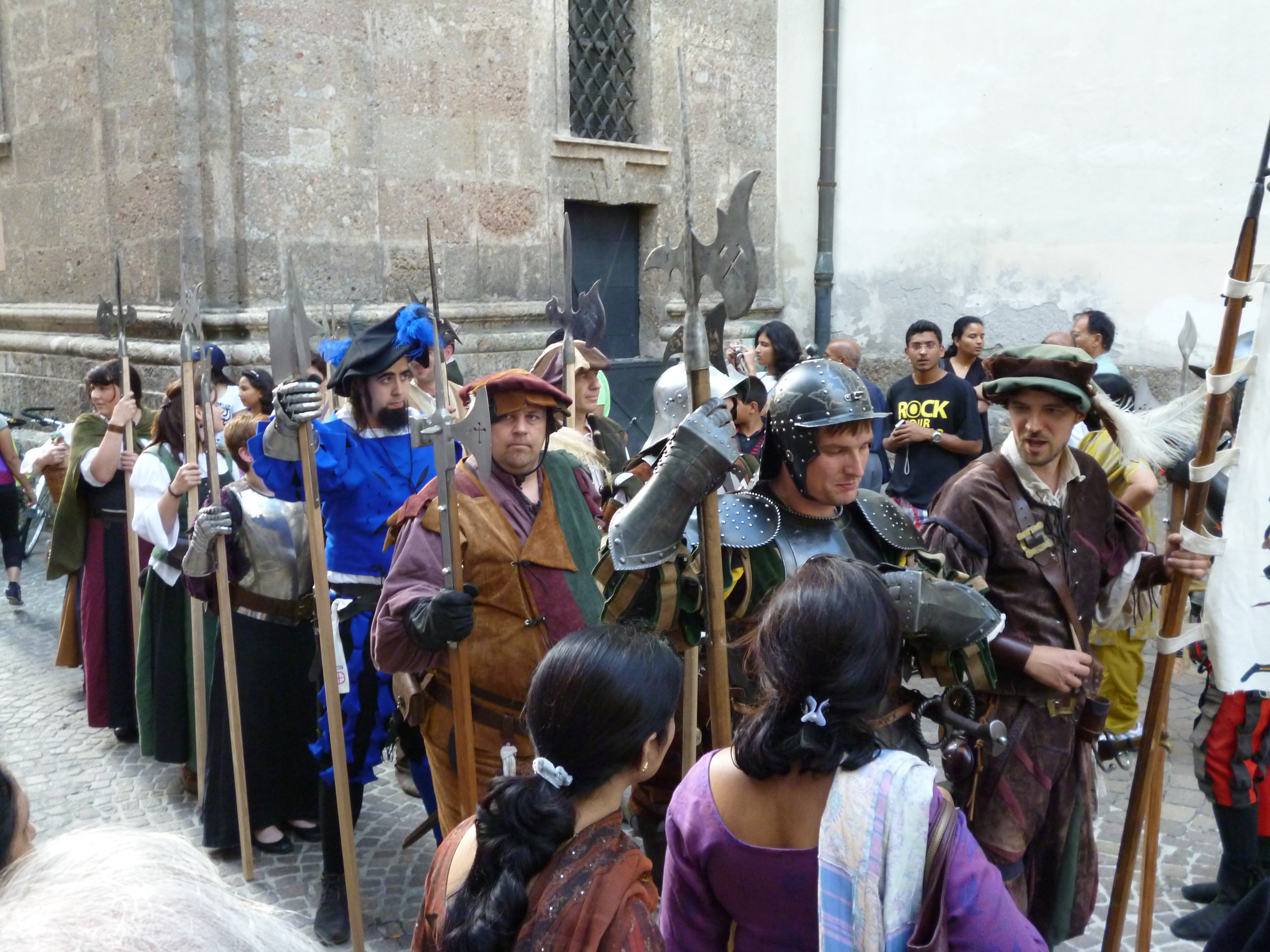 Innsbruck has been a delightful visit; so many wonderful things to see and do and then little surprises crop up to add to our experiences. Last night outside our window in the old city square, the local brass band set up and began playing – all in costume and their music was just perfect in the setting. We listened for some time and then strolled along to St Jakob Cathedral (circa 1500) for a look before dinner; it is difficult to describe the magnificence of the interior of this building. The outside is quite austere compared with some of the other churches we have seen, but the interior stops you in your tracks. Pink marble predominantly with lesser amounts of white, grey and some mottled with shades of brown; the stonework around all of the walls, the pipe organ, pulpit, altar as