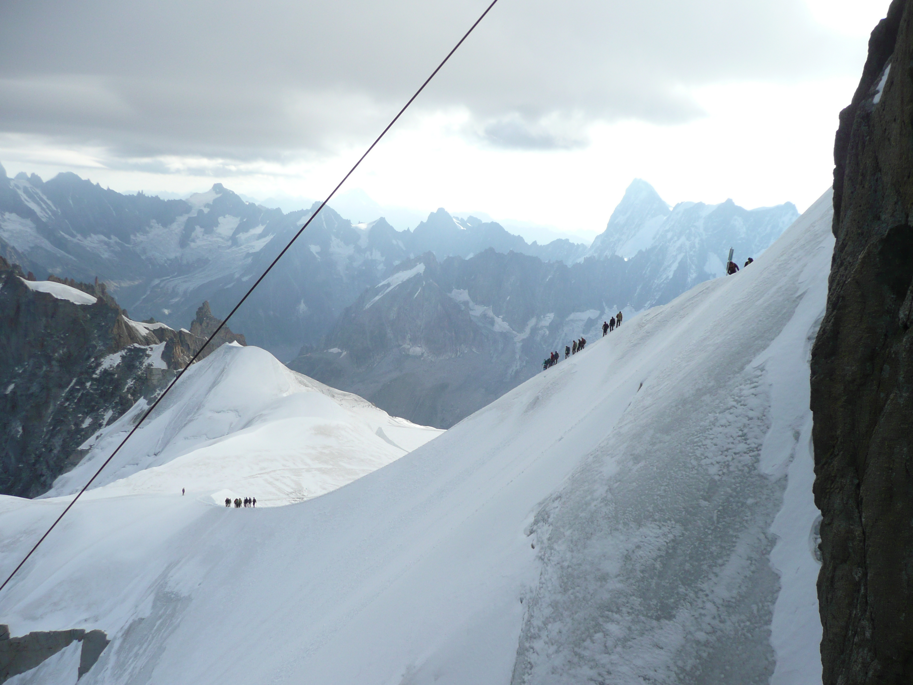 Friday was time to take the cable car up to Aiguille du Midi at 3842m which is the observation deck for Mont Blanc. Even though there was light cloud moving in to cover the peak as we arrived, it could not lessen the grandeur of the location nor the thrill of being there. At Stage One, quite a few left to cable car to walk back to the floor of the valley; while others set out from the top station to walk to the summit.