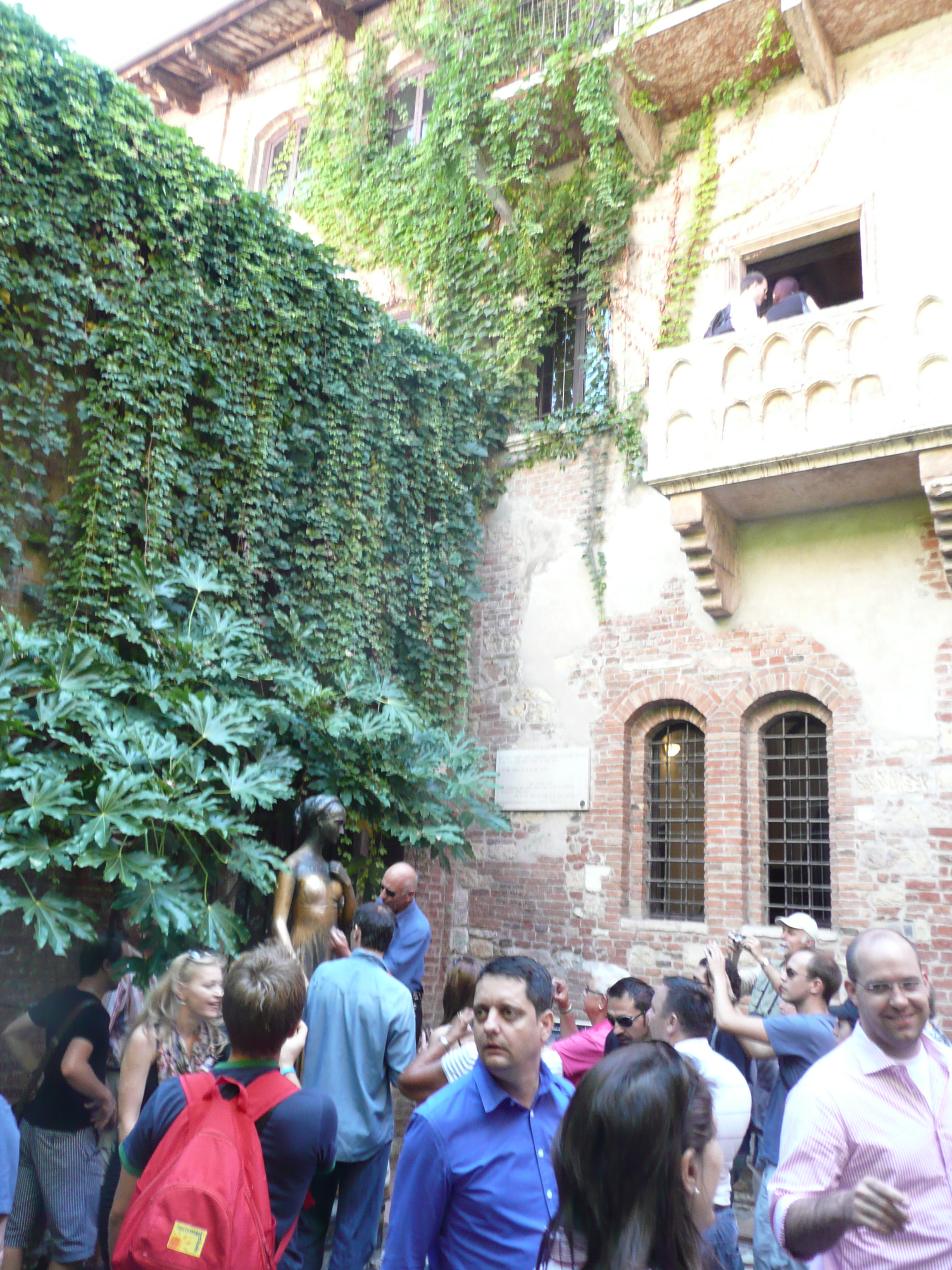 We didn’t arrive in Verona until after 6pm and found a hotel just along from the Arena; after such a long and somewhat challenging day of driving in the snow, that was far enough. The next day was spent on a “Red Bus Tour” of Verona and environs as well as wandering around some of the more well-known areas such as Juliette’s house, “that” balcony and the Arena. Once again we are walking in the footsteps of others made over centuries – history and this time Shakespeare coming to life in so many charming ways.(Photo P1130732 The arena was being prepared for a production of CATS tomorrow night )