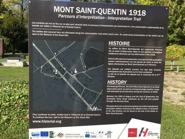 Following lunch, we headed north-west to Mont Saint Quentin just north of Peronne; another significant battle to end the hostilities and declare peace in 1918.