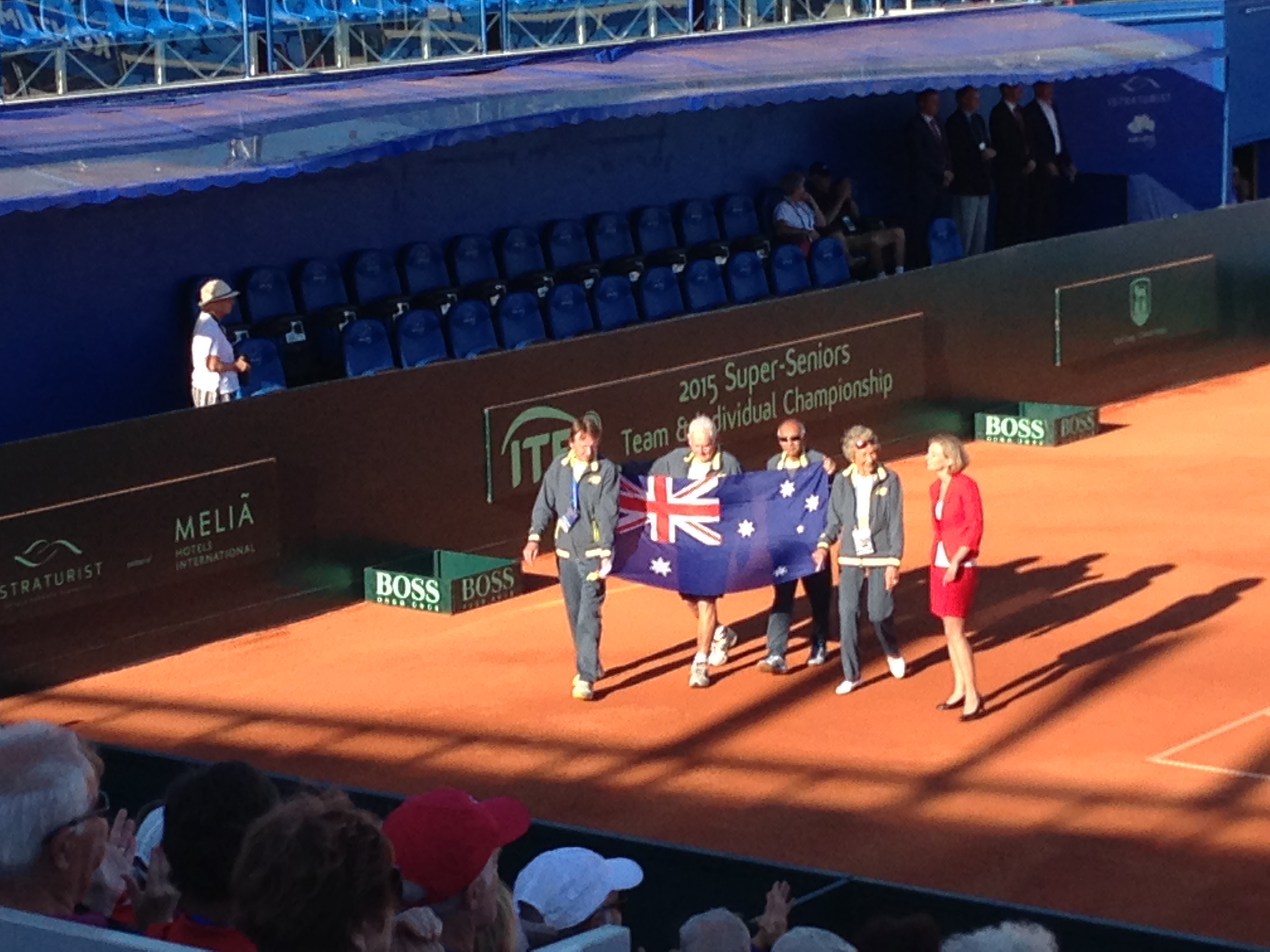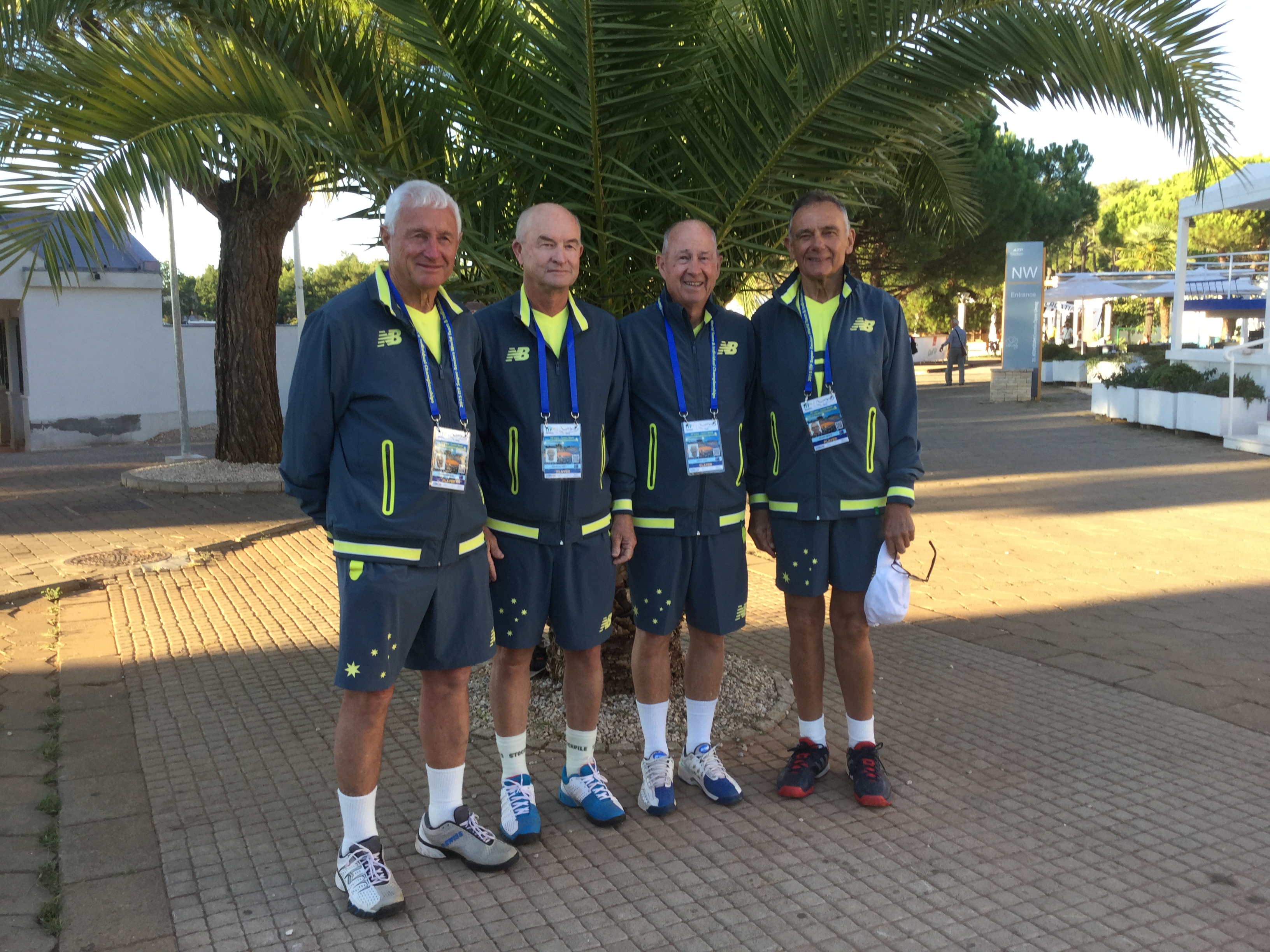 Alan and John faced Michel Coutrix and Gery in the decider. They secured an early break and held on to win the set 6-4. John’s pace and heavy topspin cross court was giving the French something that they are not used to. Two brakes of serve and the Aussies look to be on their way to a win, however a lapse of concentration saw both Alan and John lose their serve and suddenly it was three all. Four all and five all before the Aussies broke and Alan held serve to secure the win for Australia and 5th place out of 22 nations.