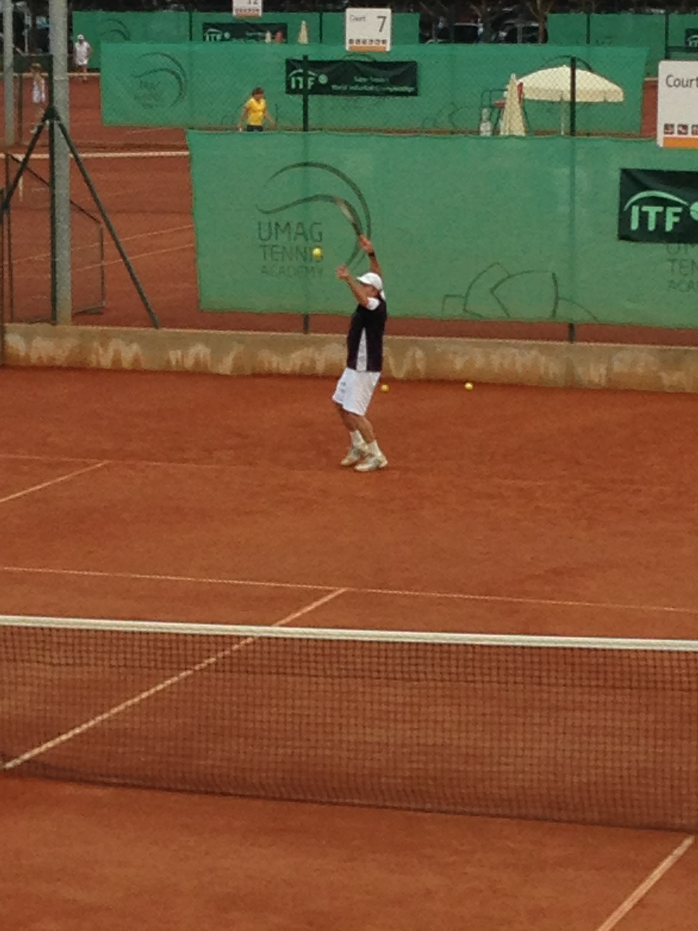 Friday 25th Terry was on court first against France’s number two Michel Berges. This was sure to be a difficult match and a lot of tennis ahead. A couple of breaks early but finally Terry secured the first set 6-3.