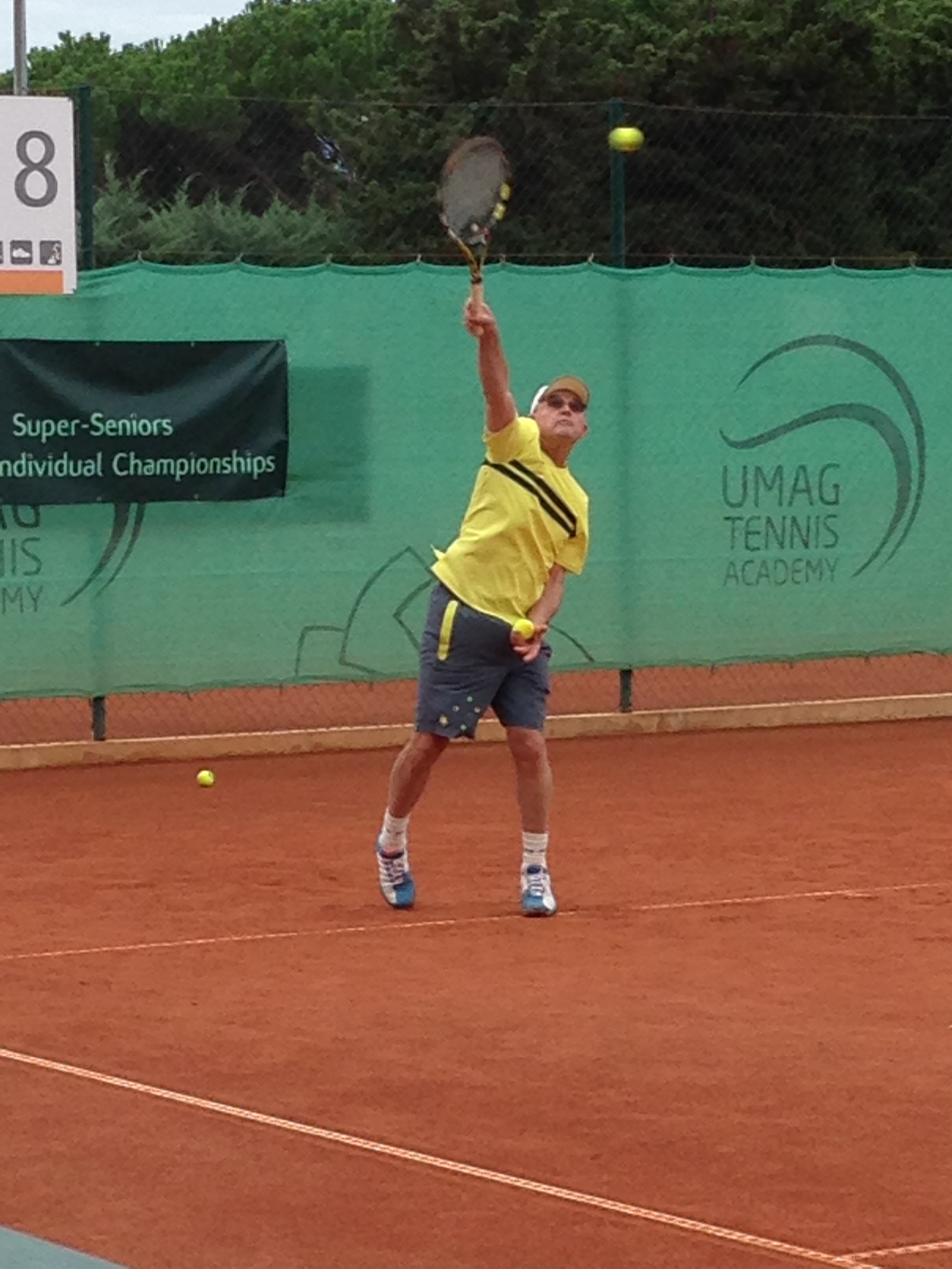 Terry’s forth round against Massimo Montemessi (ITA) was to be a tight affair with Terry playing some good ground stokes to win the first set 6-2. His coach opponent rallied in the second set to lead 3-0 and looked well in control, however Terry found another gear finally won 6-4 to seal the match.