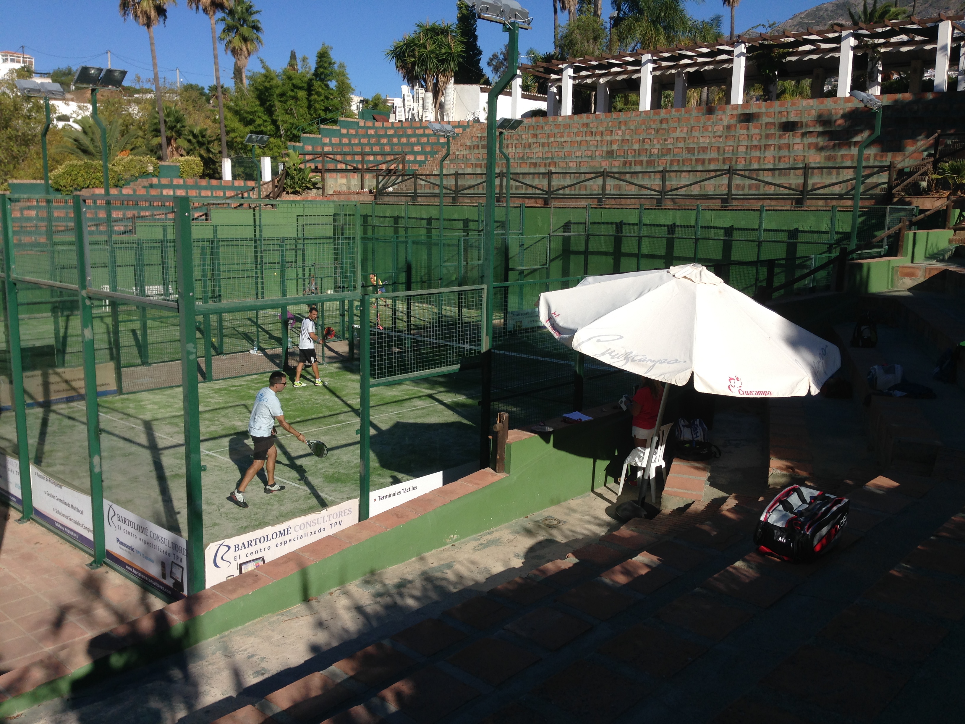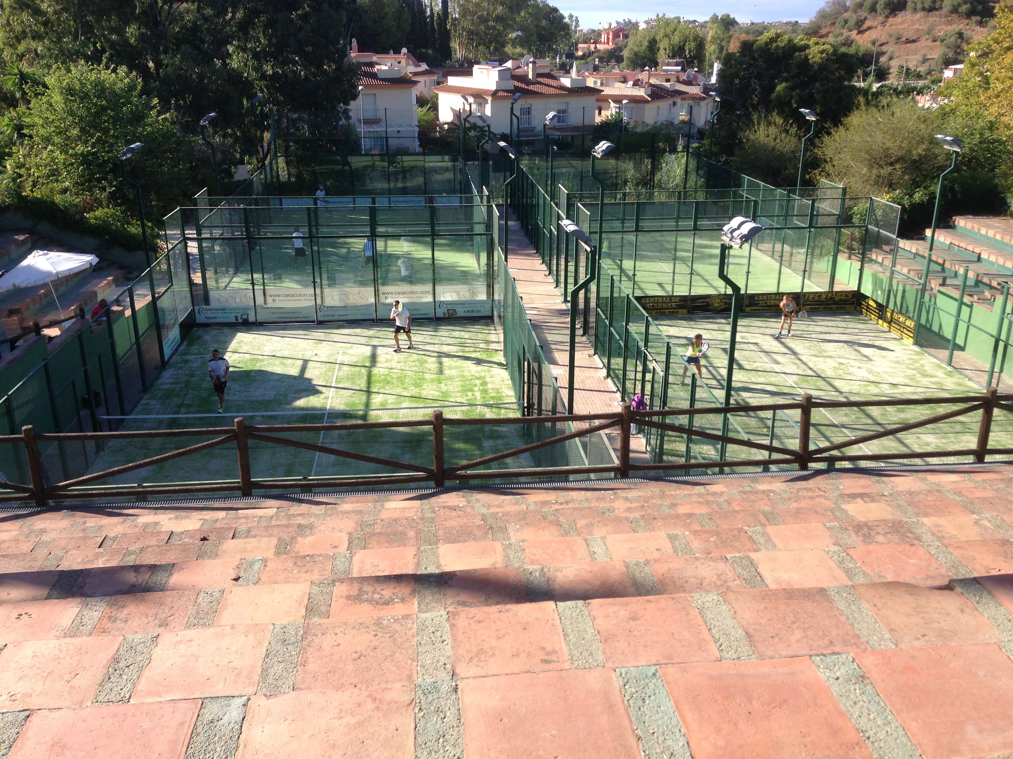 Sunday 13th I used as a practice day and was able to find three British guys having a hit and joined them to get used to the concrete surface. Monday I had a bye but went down to the courts to observe the other guys playing their singles, in other words checking out the opposition. We then had a drive around the area and up to the village of Mijas.